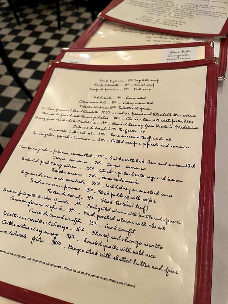 Introducing the menu at L'Express Montreal, a beloved French bistro located on Saint Denis Street. This charming eatery is known for its vibrant atmosphere where the aromas of traditional French cuisine tantalize the senses. Highlights from the main menu include the decadent Tartare de Boeuf ($31.50) and Rôti de Boeuf Froid ($23.00), each crafted with an artisan touch. For seafood aficionados, the Saumon Frais au Cerfeuil ($33.00) is a standout. Dessert lovers will delight in the Profiteroles à l'Érable ($17.50), a sweet conclusion that guests rave about. Each dish is a testament to classic French hospitality, paired with impeccable service that enhances the dining experience. The ambiance buzzes with life, reminiscent of Parisian bistros, making every meal a memorable affair. Whether it’s a romantic evening or a casual lunch, L'Express promises an authentic taste of France in the heart of Montreal.
