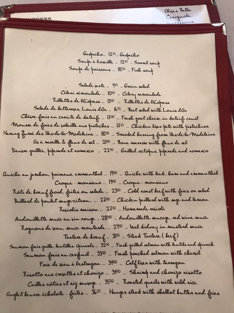 L'Express Montreal Menu (Update 2025)